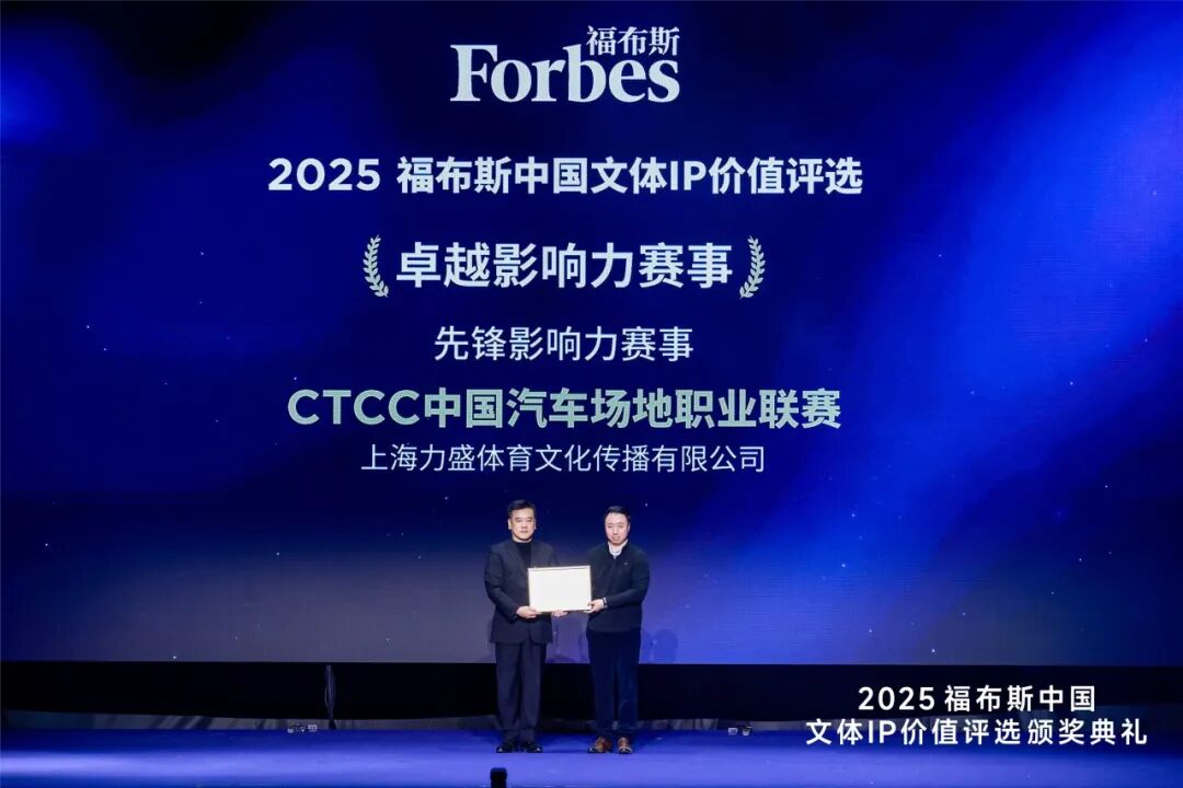 1月20日,福布斯中国发布“2025福布斯中国文体IP价值评选”结果并举行颁奖典礼,CTCC中国汽车场地职业联赛凭借卓越的运营管理、破圈的社会影响力、可持续的商业收益以及积极的社会贡献,荣膺“先锋影响力赛事”奖项。这一权威认可,标志着CTCC作为中国标杆汽车运动IP的价值与影响力获得商业与文体领域的双重背书。