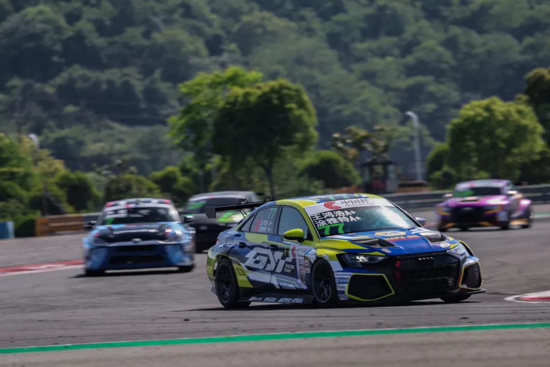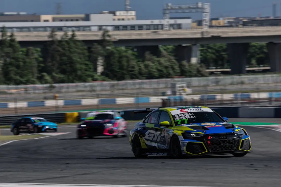 超越之后,面对后两车的虎视眈眈,涂雅特并没有丝毫懈怠,继续保持稳定的驾驶,逐步拉大与对手的差距,牢牢守住第一的位置。比赛进行过半,具有一定优势的77号赛车在车手涂雅特的驾驶下回P房进行车手交接。接过赛车的车手王鸿浩延续了稳健风格,在剩余赛程中稳定驾驶,最终77号赛车以全场第二冲线,夺得TCR组别冠军!
