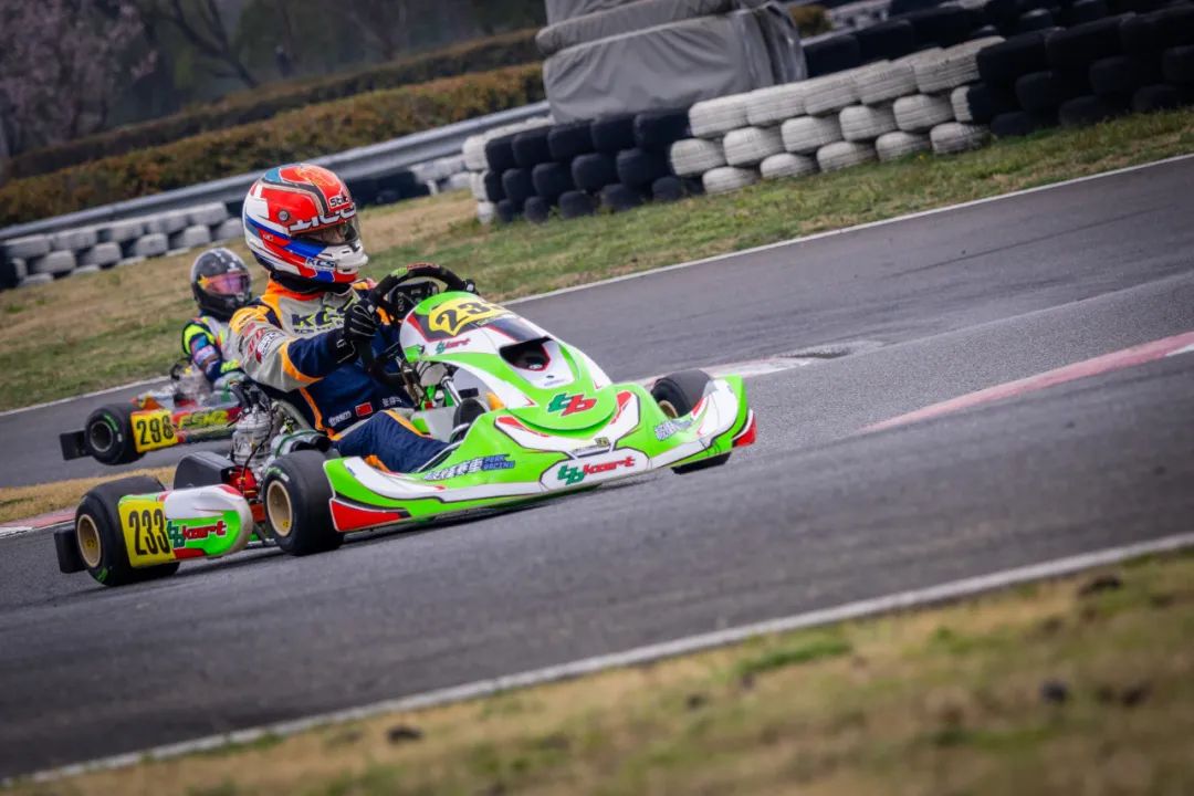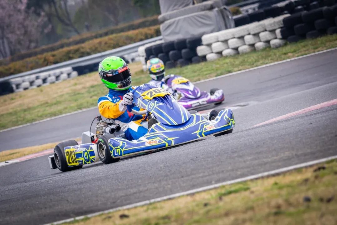 U9组超级预赛有10圈,比赛正式开始后,在T1、T2两个弯道有比较紧张的位置争夺,车队带开后可以看到,楼嗣辰抢到领跑位,张景然紧随其后,二人迅速建立起优势。