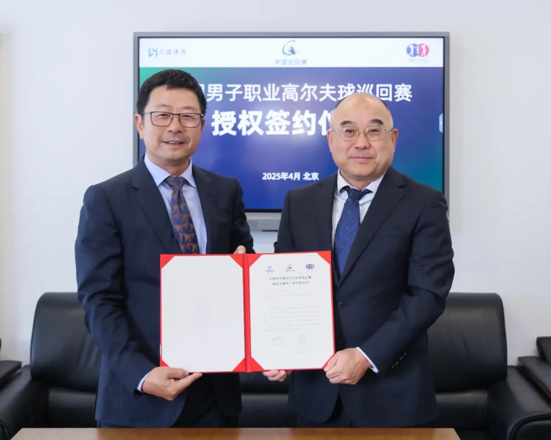 2025年4月7日,中国高尔夫球协会(简称“中高协”)与力盛云动(上海)体育科技股份有限公司(简称“力盛体育”)在京举行签约仪式,正式宣布力盛体育成为“中国男子职业高尔夫球巡回赛”(简称“中巡赛”)独家官方运营推广机构。中高协主席贺凤翔、副主席田晓君、秘书长韦庆峰、男子职业赛事部部长李今亮、战略宣传部部长李莹、力盛云动(上海)体育科技股份有限公司董事长夏青、北京力盛体育文化发展有限公司总经理曹杉、男子职业赛事部谭楷出席签约仪式。