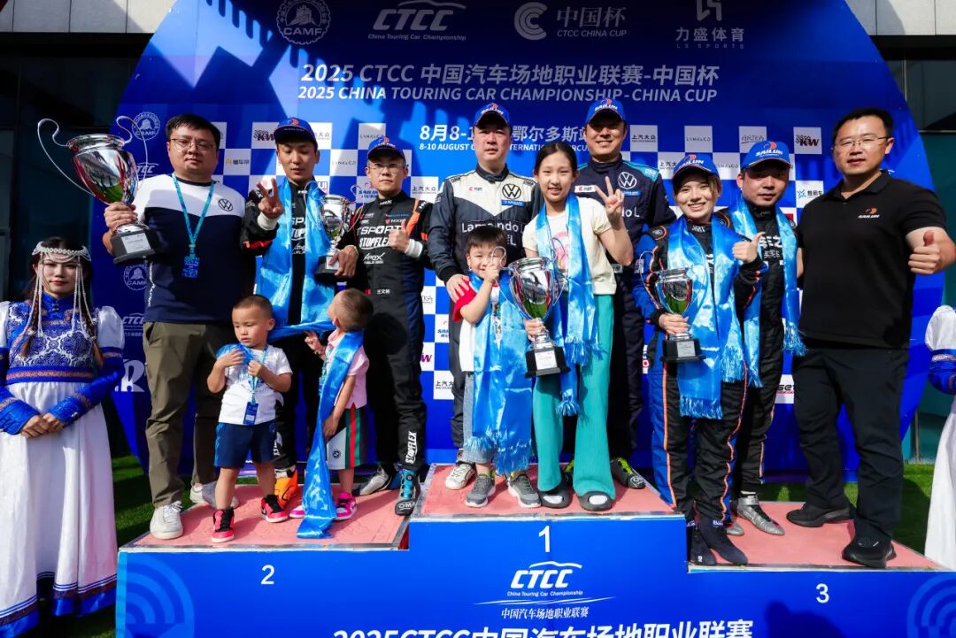8月10日,2025 CTCC中国汽车场地职业联赛第四分站在鄂尔多斯国际赛车场落幕。上汽大众333车队在CTCC中国杯两回合比赛中表现强势,首日由孙超/汤树彦(7号)车组摘得全场与TCS组别双冠,次日则由高华阳(34号)从队尾绝杀登顶,孙超/汤树彦号车组收获组别季军。两回合双双登上领奖台,为车队荣誉墙再添两座冠军奖杯。