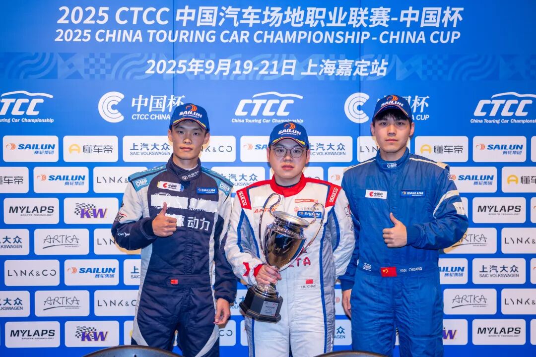 9月19-21日,2025 CTCC中国汽车场地职业联赛上海嘉定站第五分站再现精彩攻防大战,CTCC中国杯一众参赛车手在两回合决赛中共同献上极限缠斗戏码,其中TCR组别的争夺战尤为激烈。纵横车队919号车组刘超/刘锦融/刘磊在首回合的湿地混战中全力拼搏,携手斩获赛季首胜,并在次回合再次夺得组别亚军。