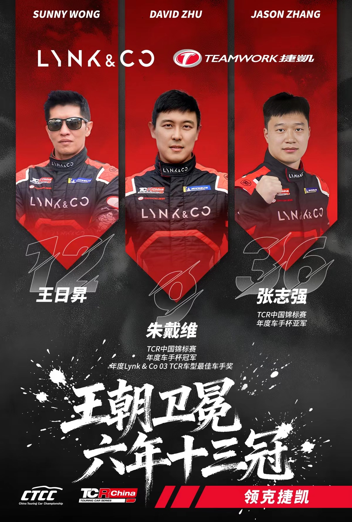 2025 CTCC中国汽车场地职业联赛TCR中国锦标赛的赛场上,实力劲旅领克捷凯车队携旗舰战车领克03 TCR出征,以王者之姿再创佳绩。在全赛季6站共12回合的对决中,车队三位主力战将张志强、朱戴维、王日昇全程展现强大竞争力,最终代表车队达成年度荣誉大满贯,锁定年度车手杯、车队杯、车型杯冠军。