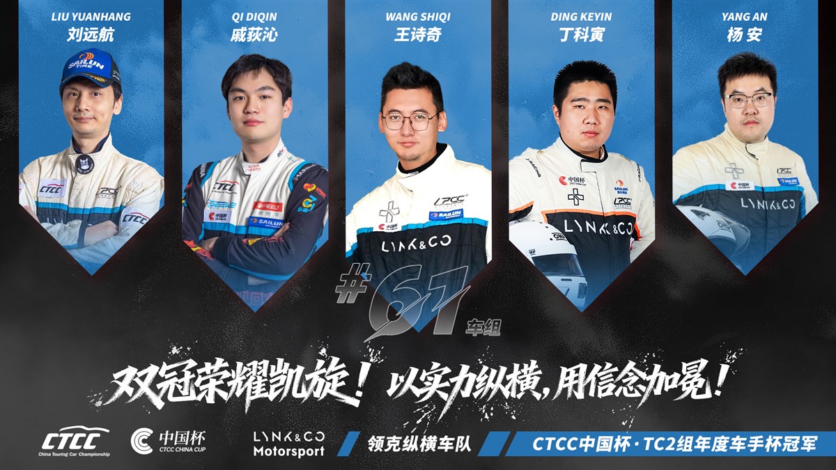 回顾2025赛季,领克纵横车队成功包揽CTCC中国杯TC2组年度车队杯和年度车手杯双冠,更以六站赛事中多次包揽领奖台的统治级表现,彰显了领克品牌深厚的性能底蕴与卓越的团队协作能力。我们期待领克纵横车队未来继续驰骋在中国职业赛车的巅峰舞台,不断突破极限,共创更多辉煌篇章!