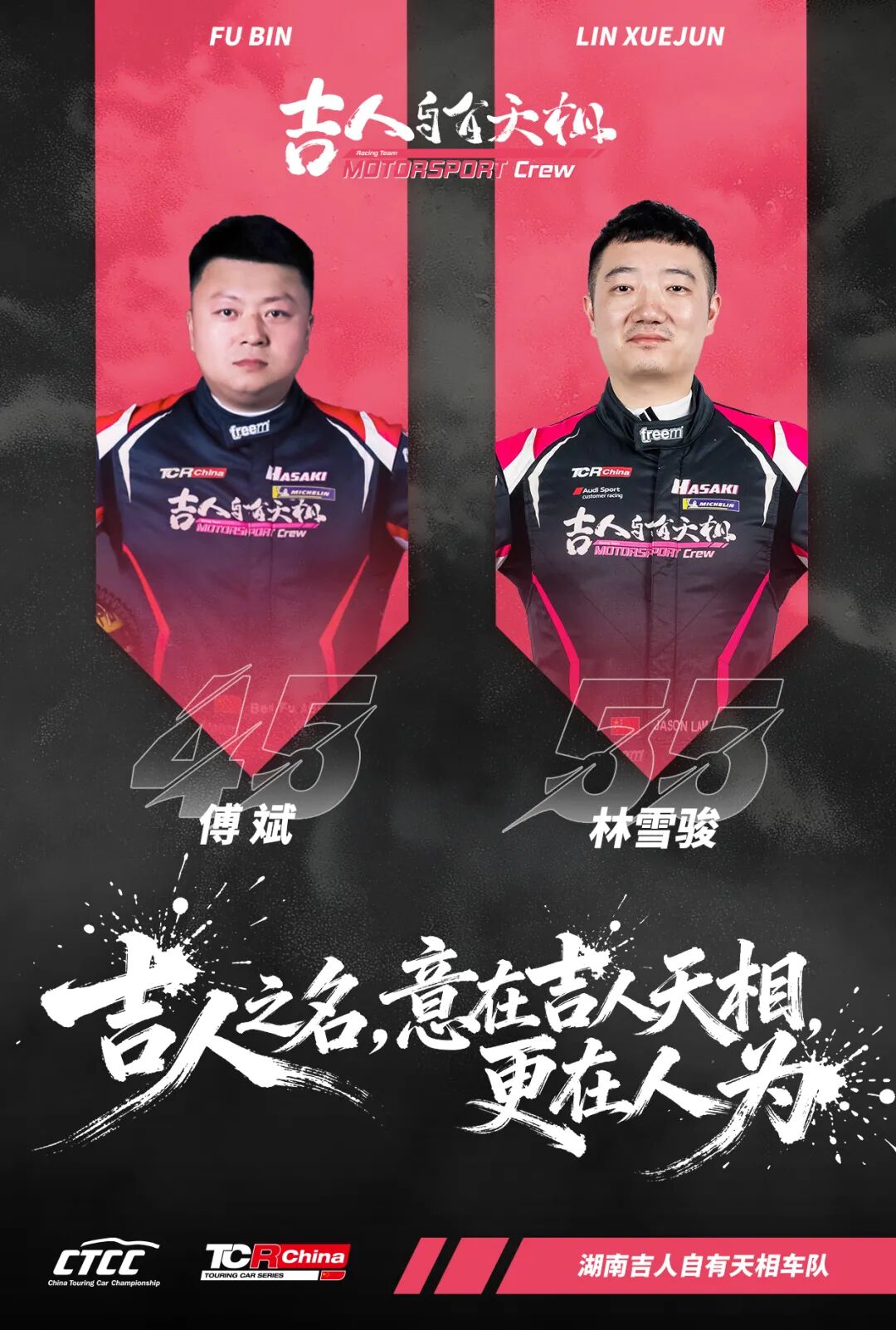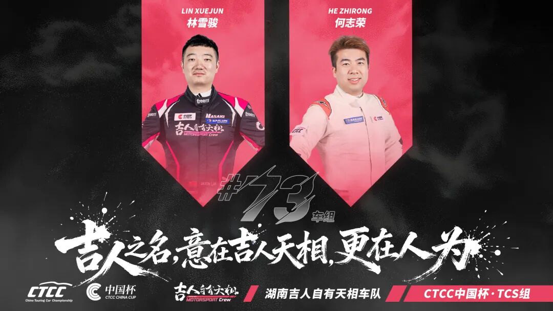 包括林志山、章文滔、陈方平、林雪骏、傅斌在内的多位实力车手随湖南吉人自有天相车队出战TCR中国锦标赛,在和各方好手的激烈较量中淬炼技艺。韩昌/金忭、朱杰生/钟毅展及吴泽庆、何志荣等加盟CTCC的赛场新人则组队代表湖南吉人自有天相车队参与CTCC中国杯TCR、TCS组别竞争,在“55分钟+1圈”的比赛中书写速度输出与团队策略的高度融合。