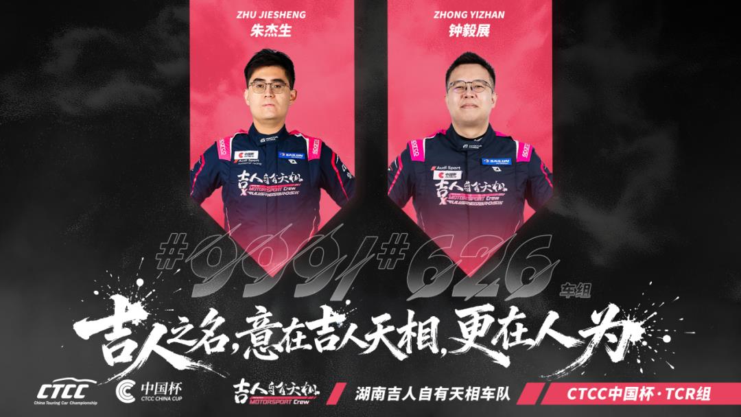 湘江之畔,CTCC于湖南国际赛车场迎接收官。回到车队大本营,湖南吉人自有天相众将在家门口拼尽全力。章文滔本站比赛回到TCR中国锦标赛,CTCC中国杯中韩昌/金忭坚守TCR组别,钟毅展则首次尝试单人驾驶参赛。朱杰生则和吴泽庆、叶俊斌作为全新组合参加TCS组别。