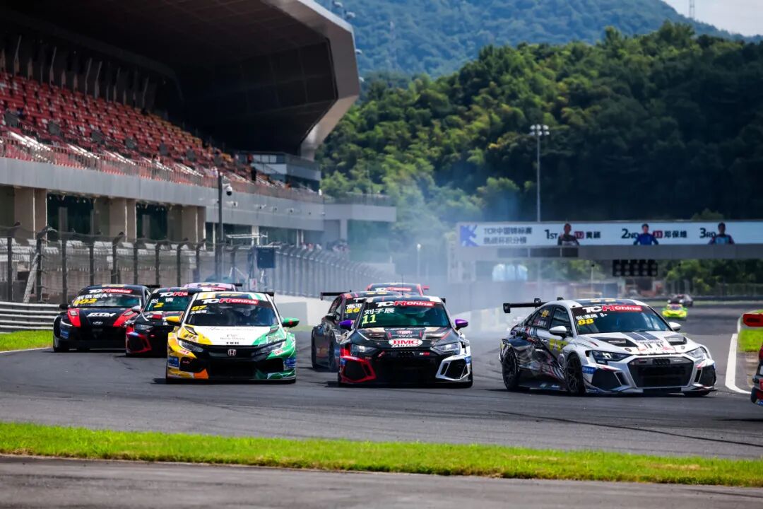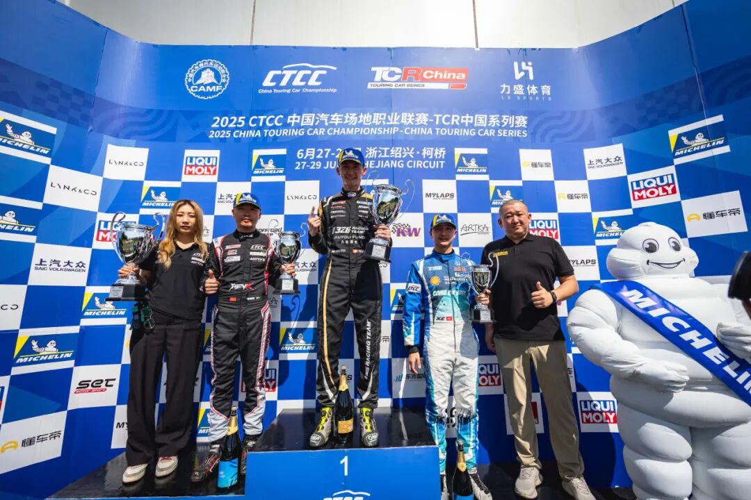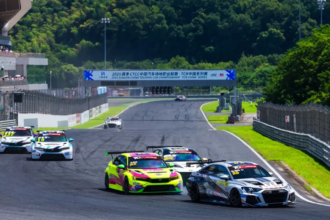 第三站来到浙江国际赛车场,TCR中国挑战赛与更高组别的TCR中国锦标赛同场竞技,超过30台赛车的庞大阵容使得争夺空前激烈。在首回合比赛中,从组别杆位发车的张嗛尚凭借完美的起步,在一圈之内飙升十个位置,不仅领跑TCR中国挑战赛,更在与高组别强手的“跨界对话”中不落下风。最终,在安全车多次出动、局势复杂的比赛中,他成功斩获TCR中国挑战赛冠军。