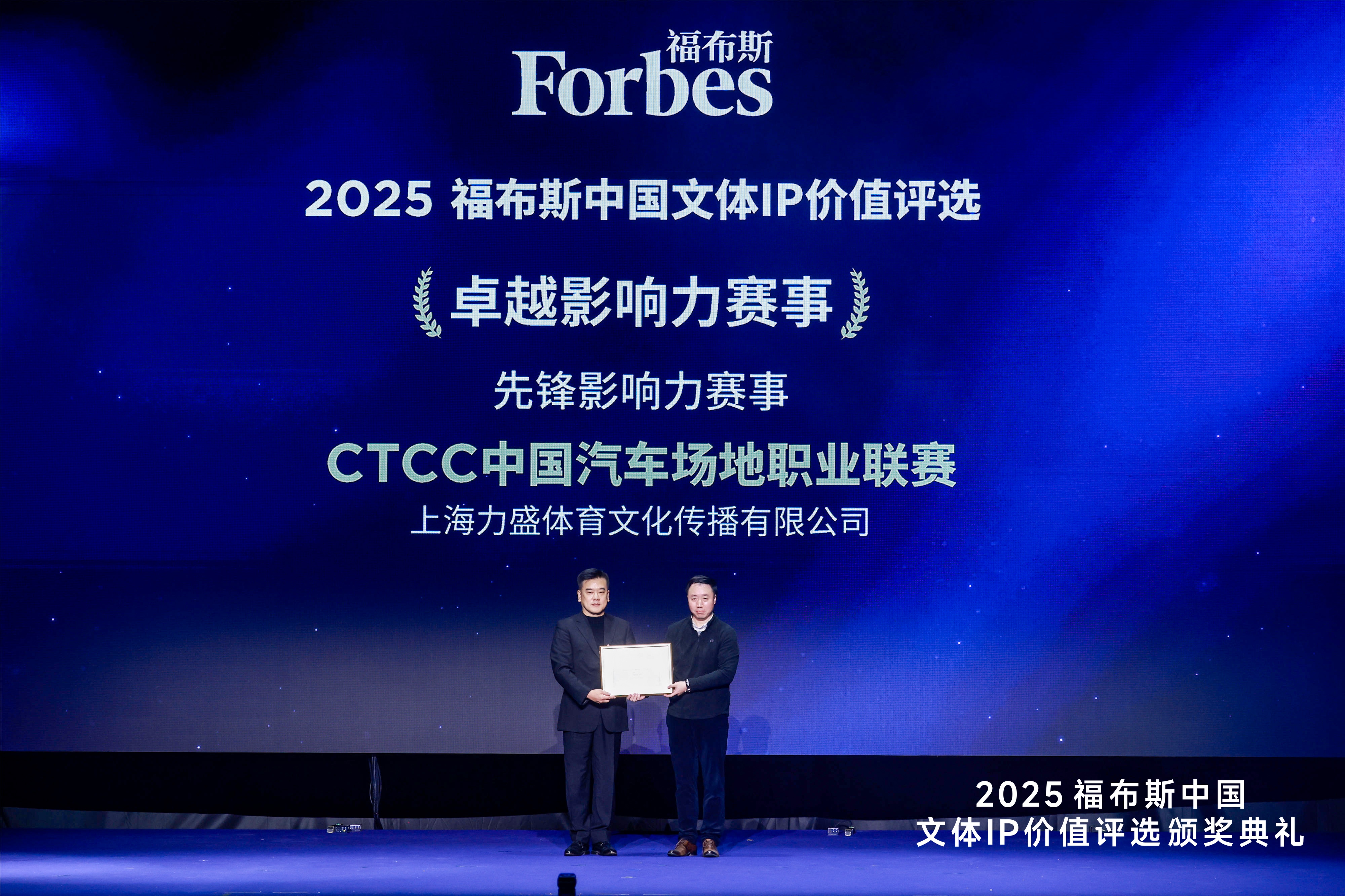 1月20日,福布斯中国发布“2025福布斯中国文体IP价值评选”结果并举行颁奖典礼,CTCC中国汽车场地职业联赛凭借卓越的运营管理、破圈的社会影响力、可持续的商业收益以及积极的社会贡献,荣膺“先锋影响力赛事”奖项。