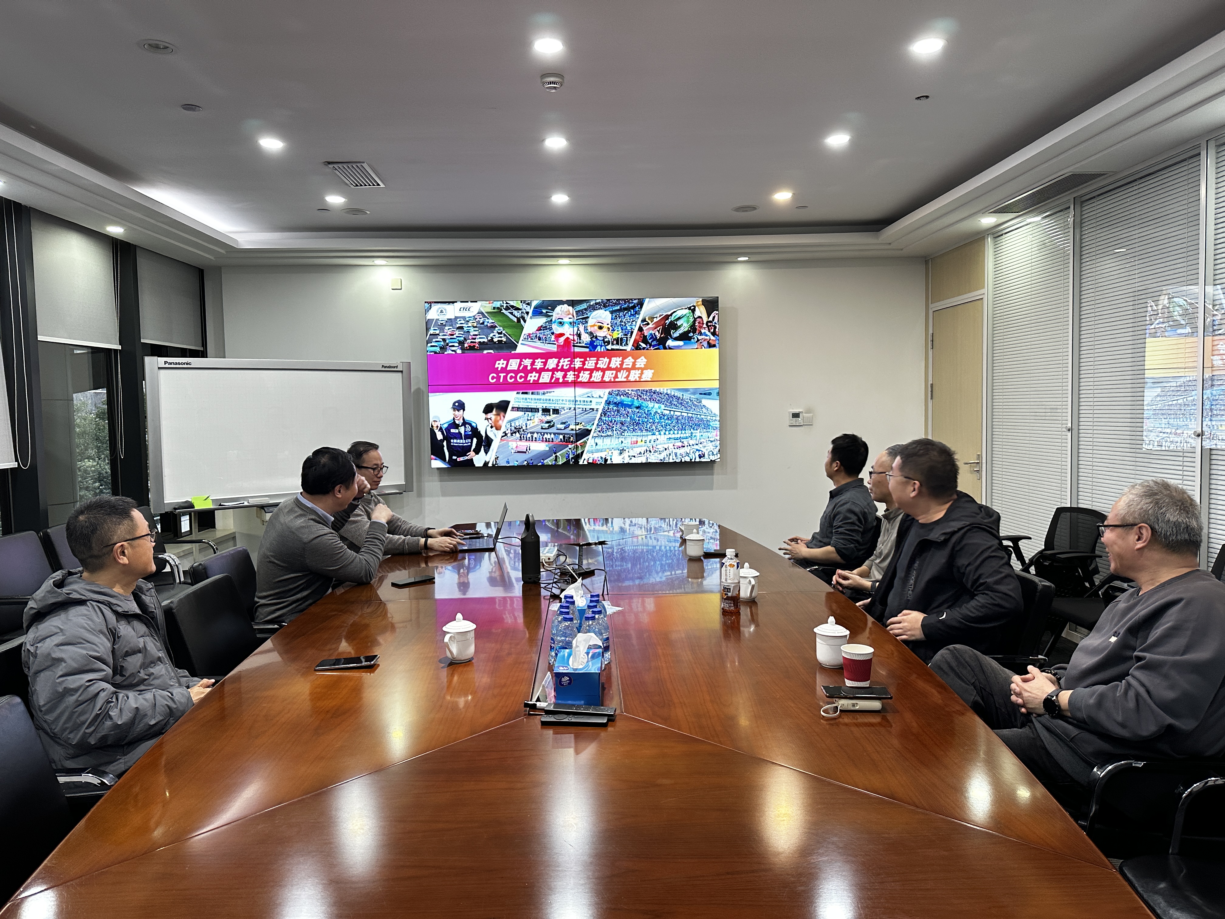 1月14日,秦皇岛市招商和投资促进中心主任孙娟女士、首钢赛车谷总经理寇志宇先生一行到力盛体育参观交流。上海力盛体育文化传播有限公司总经理、CTCC首席运营官程广先生,力盛云动(上海)体育科技股份有限公司副总经理范子成先生,赛事IP部总监汪鹤平先生等陪同参观。