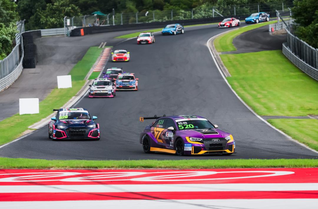 在这样的恶劣条件下,各车队的强制停站窗口开启,停站时机的选择和策略的应变成为了决定比赛走势的关键。尽管雨势丝毫未减,赛道内积水成河,但杨政凭借出色的驾驶技巧和强大的心理素质,驾驶着奥迪 TCR 赛车一路稳健前行。在比赛因红旗提前结束时,他成功克服了高温与暴雨的双重暴击,以全场第三、组别亚军的成绩结束了本回合战斗。