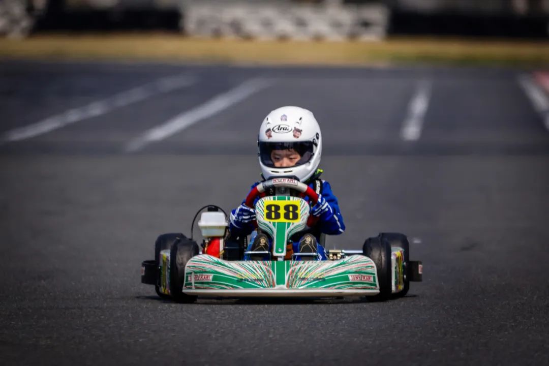 U9组超级预赛有10圈,比赛正式开始后,在T1、T2两个弯道有比较紧张的位置争夺,车队带开后可以看到,楼嗣辰抢到领跑位,张景然紧随其后,二人迅速建立起优势。