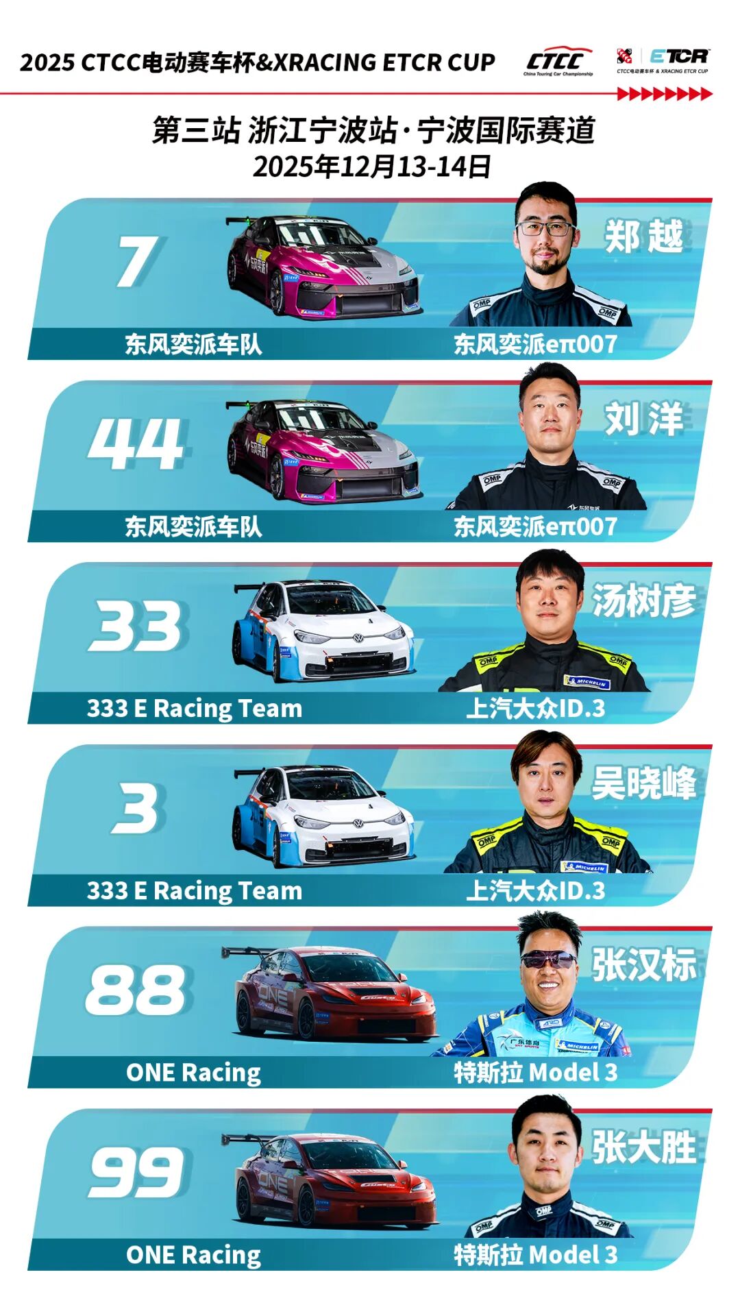 2025 CTCC电动赛车杯 & XRACING ETCR CUP浙江宁波站,不仅是一场速度与技术的盛宴,更是一场关乎荣誉与梦想的终极较量。12月13-14日,让我们共同期待各位车手在宁波国际赛道献上一场精彩绝伦的电动赛车巅峰对决,见证年度王者的加冕!