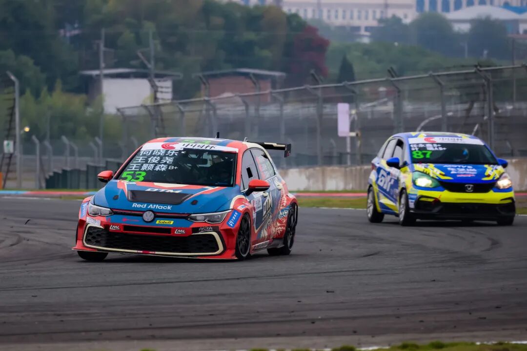 何晓乐接过这台大众高尔夫8赛车后并未急于追赶,而是凭借自己的经验分析了战局,选择适时地保护好车辆与轮胎,直至最后关头再进行最终尝试。好在幸运女神眷顾了这支车组,竞争对手相继遭遇状况和故障使得53号车组在距离比赛结束仅剩最后1分钟时来到了TC1组领先的位置。
