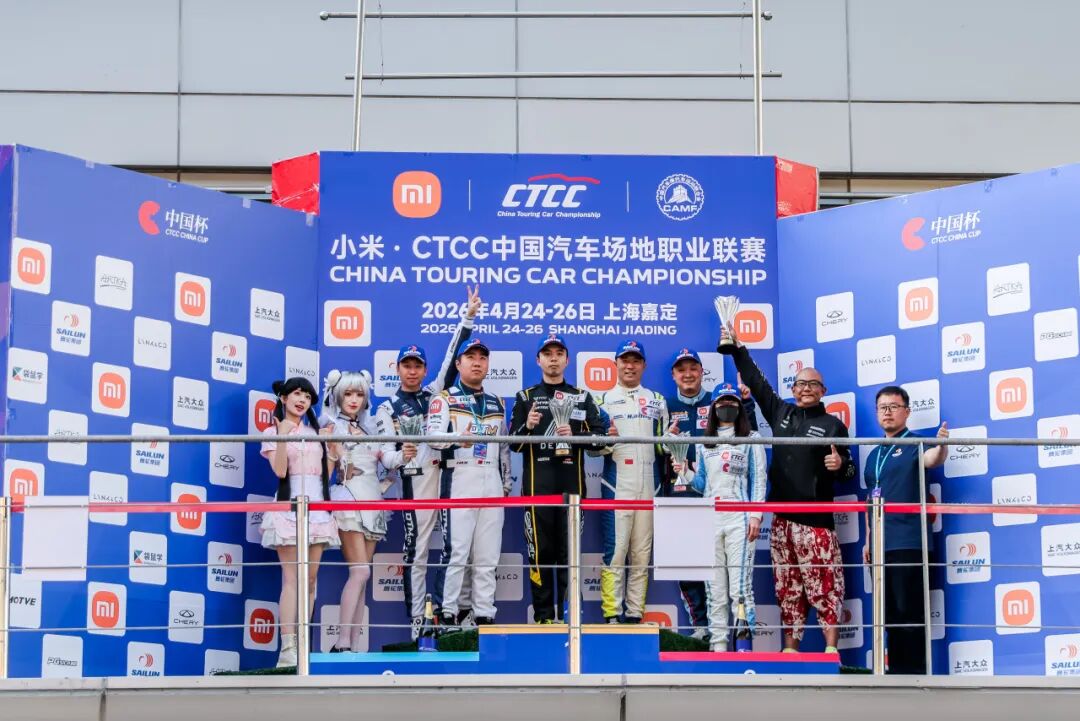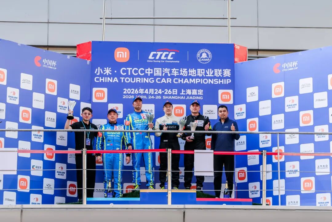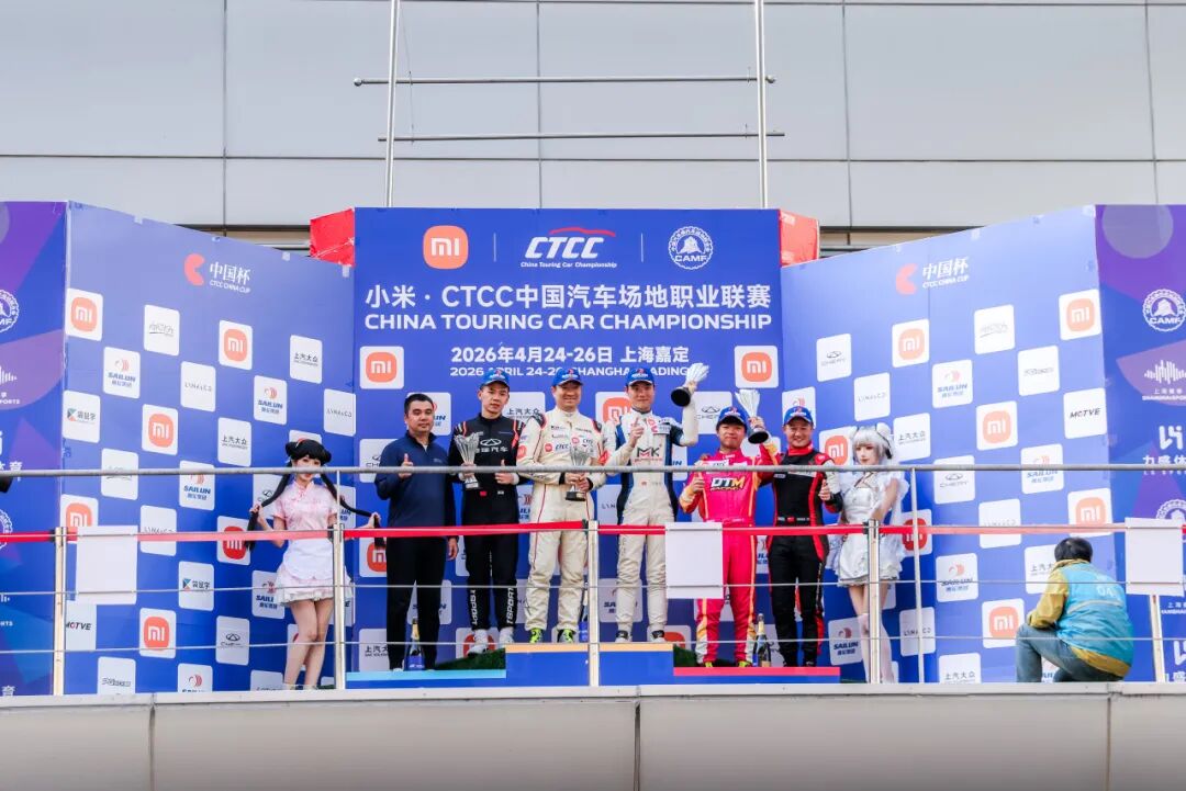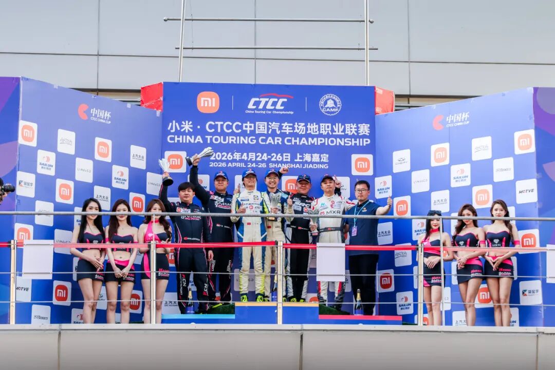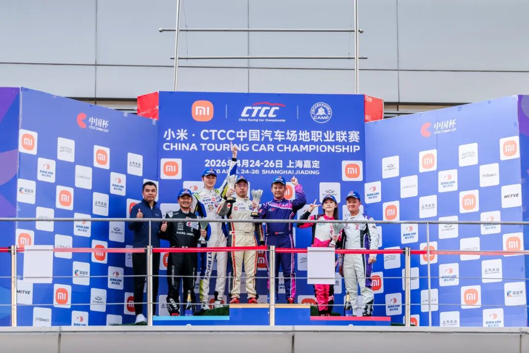 4月25日,2026小米·CTCC中国汽车场地职业联赛于上海国际赛车场完成揭幕战首个决赛日竞逐。39台赛车集结CTCC中国杯,包括领克汽车、奇瑞汽车、上汽大众三大厂商齐亮相,为新赛季首战拉开帷幕。在CTCC中国杯首回合的精彩交锋中,北京宏誉基江日亚车队张蝶/邱艳辉/郑晚成车组凭借高效停站锁定胜局,斩获全场第一和TCS组别冠军荣誉。